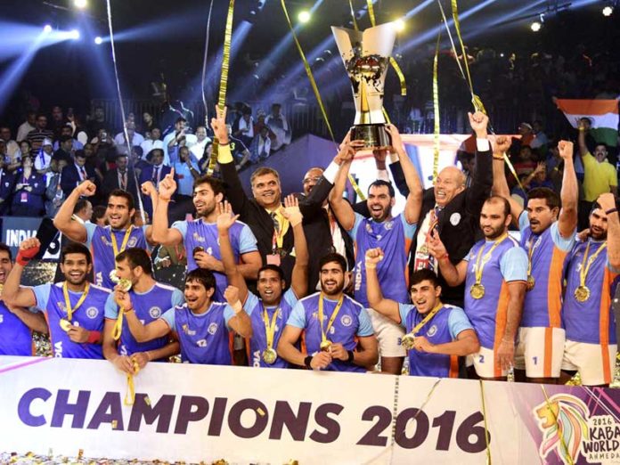 नई दिल्ली। दूसरे हाफ में शानदार प्रदर्शन की बदौलत भारत ने जोरदार वापसी करते हुए कबड्डी विश्व कप 2016 के फाइनल में ईरान को 38-29 से हराकर खिताब जीत लिया। खेल की दो दिग्गज टीमों के बीच खेले गए इस मुकाबले में भारत ने लगातार तीसरी बार ईरान का विश्व चैम्पियन बनने का सपना तोड़ दिया।